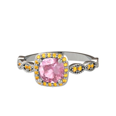 Pembe kuvars ve sitrin 14 ayar beyaz altın yüzük