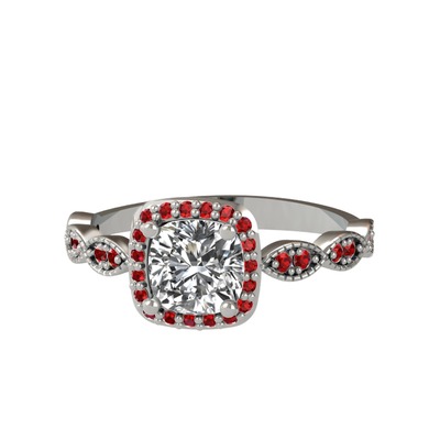 Pırlanta ve garnet 14 ayar beyaz altın yüzük (0.92 karat)