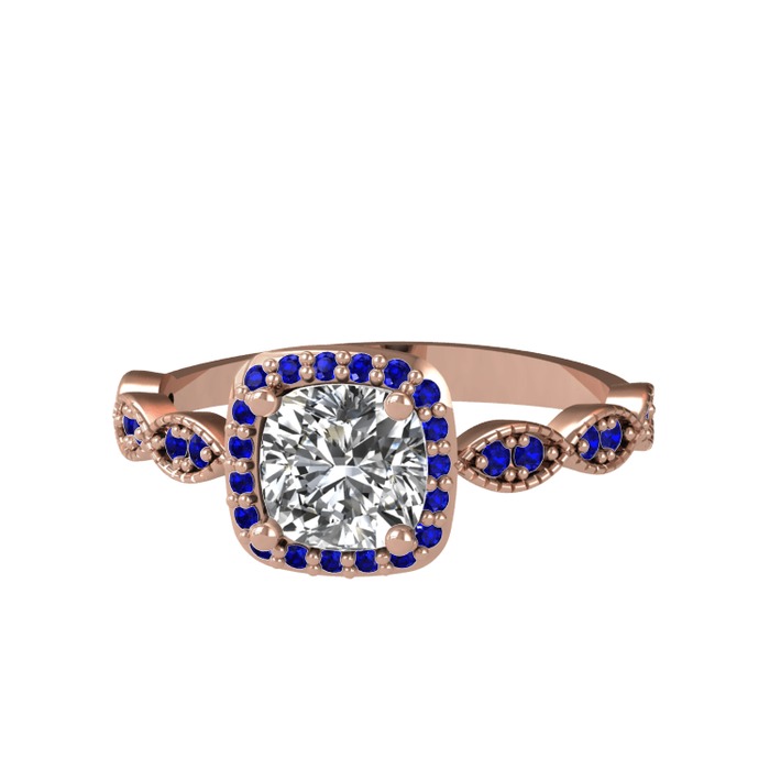 Pırlanta ve lab safir 8 ayar rose altın yüzük (0.92 karat)