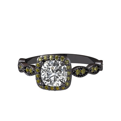 Pırlanta ve peridot 925 ayar siyah rodyum kaplama gümüş yüzük (0.92 karat)