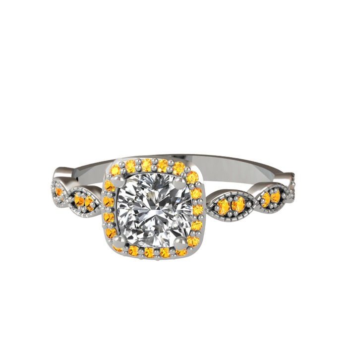 Pırlanta ve sitrin 925 ayar gümüş yüzük (0.92 karat)