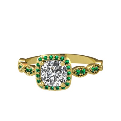 Pırlanta ve yeşil kuvars 8 ayar altın yüzük (0.92 karat)