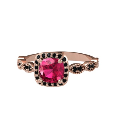 Rodolit garnet ve siyah zirkon 8 ayar rose altın yüzük