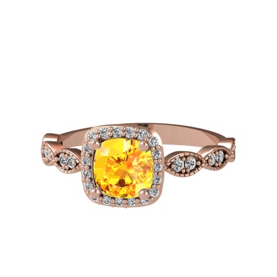 Sitrin ve beyaz zirkon 14 ayar rose altın yüzük