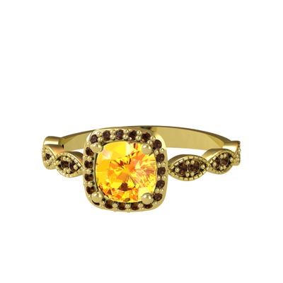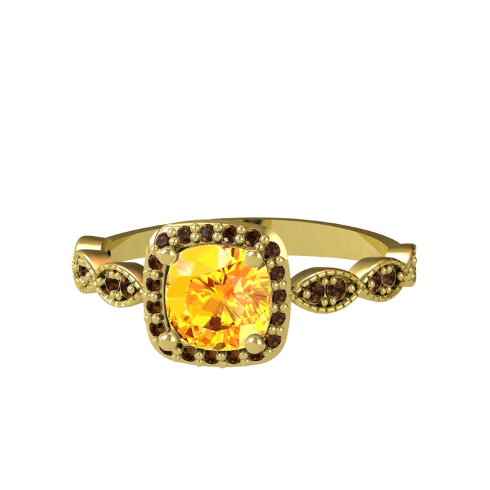 Sitrin ve dumanlı kuvars 8 ayar altın yüzük