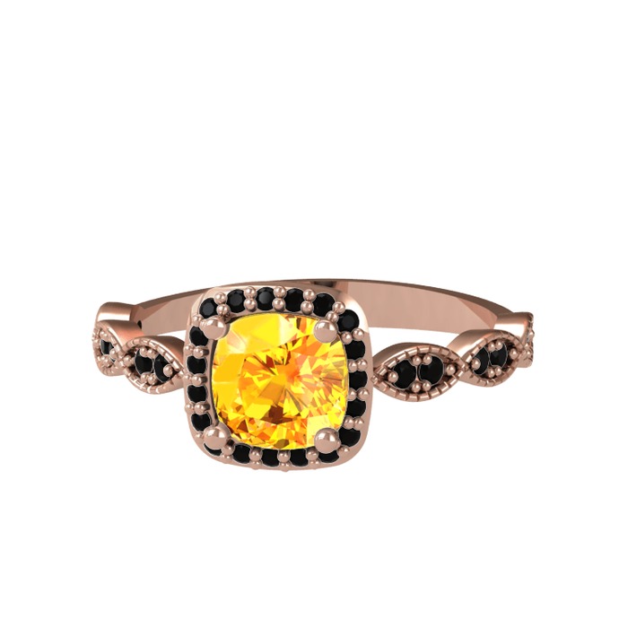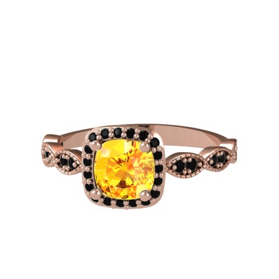 Sitrin ve siyah zirkon 14 ayar rose altın yüzük