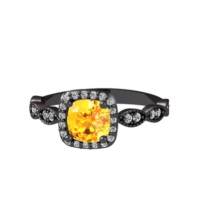 Sitrin ve swarovski 925 ayar siyah rodyum kaplama gümüş yüzük