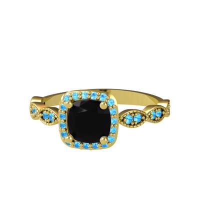 Siyah zirkon ve akuamarin 18 ayar altın yüzük