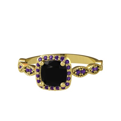 Siyah zirkon ve ametist 8 ayar altın yüzük