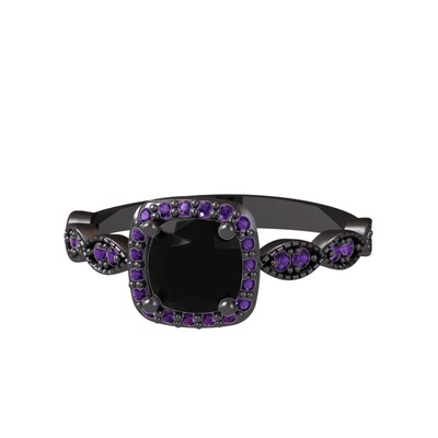 Siyah zirkon ve ametist 925 ayar siyah rodyum kaplama gümüş yüzük