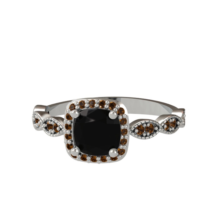 Siyah zirkon ve dumanlı kuvars 14 ayar beyaz altın yüzük