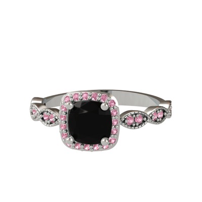 Siyah zirkon ve pembe kuvars 18 ayar beyaz altın yüzük