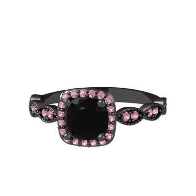 Siyah zirkon ve pembe kuvars 925 ayar siyah rodyum kaplama gümüş yüzük