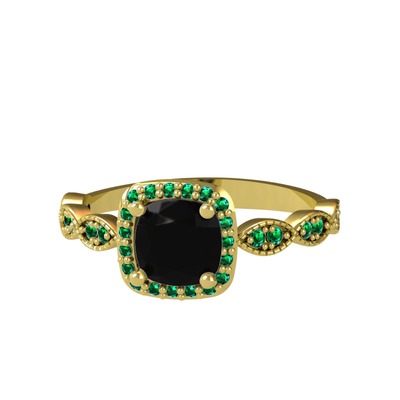 Siyah zirkon ve yeşil kuvars 14 ayar altın yüzük
