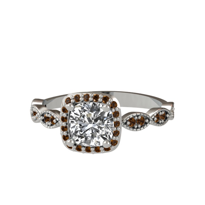 Swarovski ve dumanlı kuvars 8 ayar beyaz altın yüzük