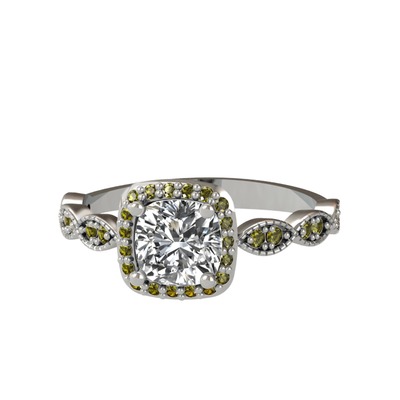 Swarovski ve peridot 8 ayar beyaz altın yüzük