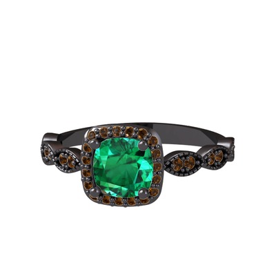 Yeşil kuvars ve dumanlı kuvars 925 ayar siyah rodyum kaplama gümüş yüzük
