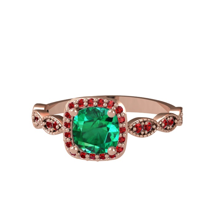 Yeşil kuvars ve garnet 14 ayar rose altın yüzük