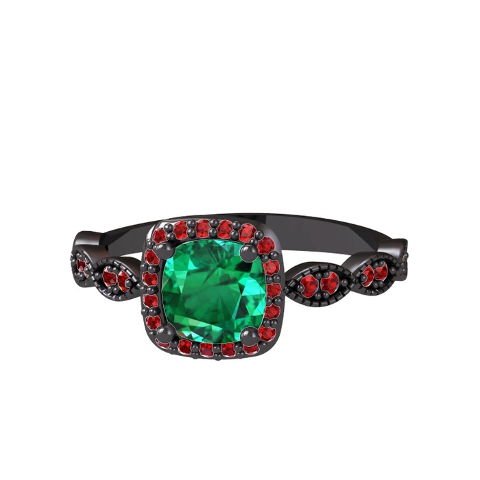 Yeşil kuvars ve garnet 925 ayar siyah rodyum kaplama gümüş yüzük