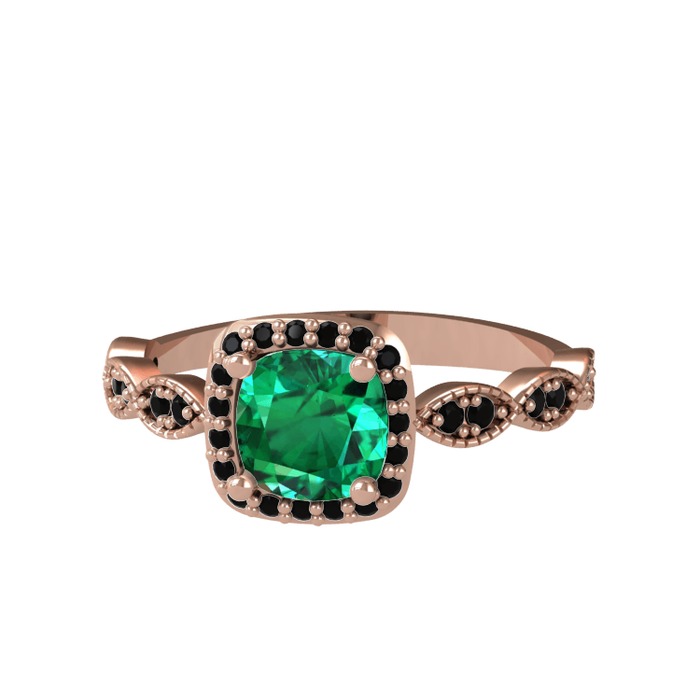 Yeşil kuvars ve siyah zirkon 8 ayar rose altın yüzük