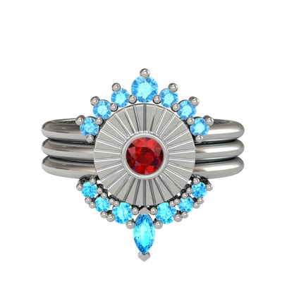 Akuamarin ve garnet 14 ayar beyaz altın yüzük
