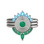 Akuamarin ve kök zümrüt 18 ayar beyaz altın yüzük