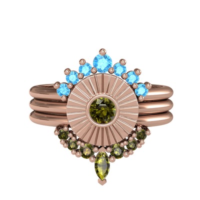 Akuamarin ve peridot 8 ayar rose altın yüzük