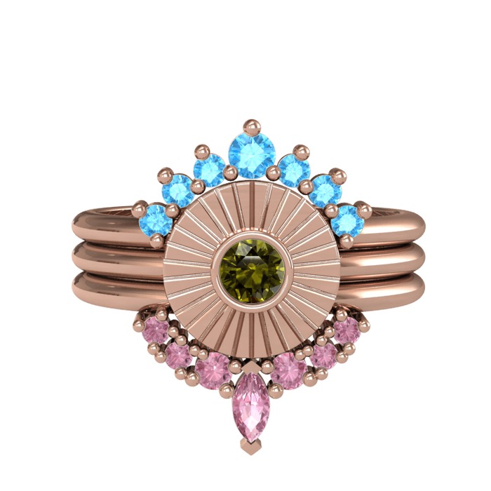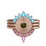 Akuamarin, peridot ve pembe kuvars 8 ayar rose altın yüzük