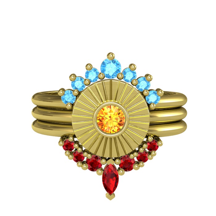 Akuamarin, sitrin ve garnet 18 ayar altın yüzük