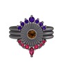 Ametist, dumanlı kuvars ve rodolit garnet 925 ayar siyah rodyum kaplama gümüş yüzük