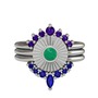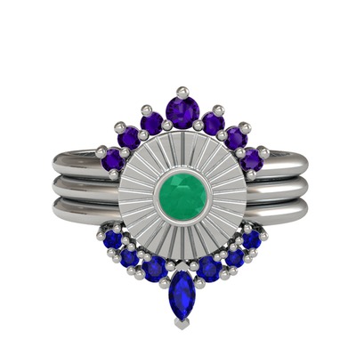 Ametist, kök zümrüt ve lab safir 18 ayar beyaz altın yüzük