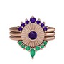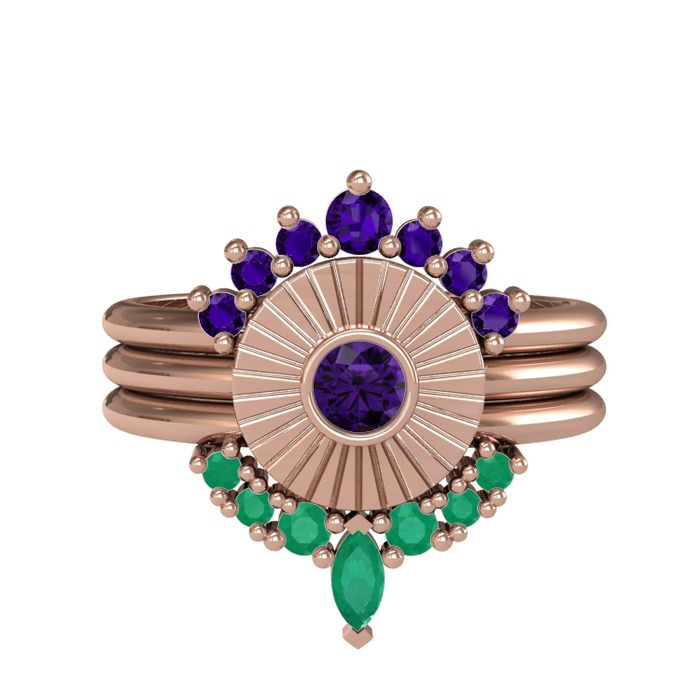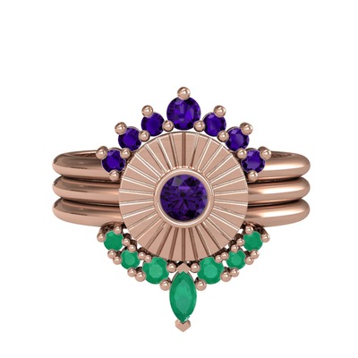Ametist ve kök zümrüt 925 ayar rose altın kaplama gümüş yüzük