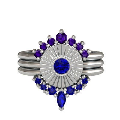 Ametist ve lab safir 8 ayar beyaz altın yüzük