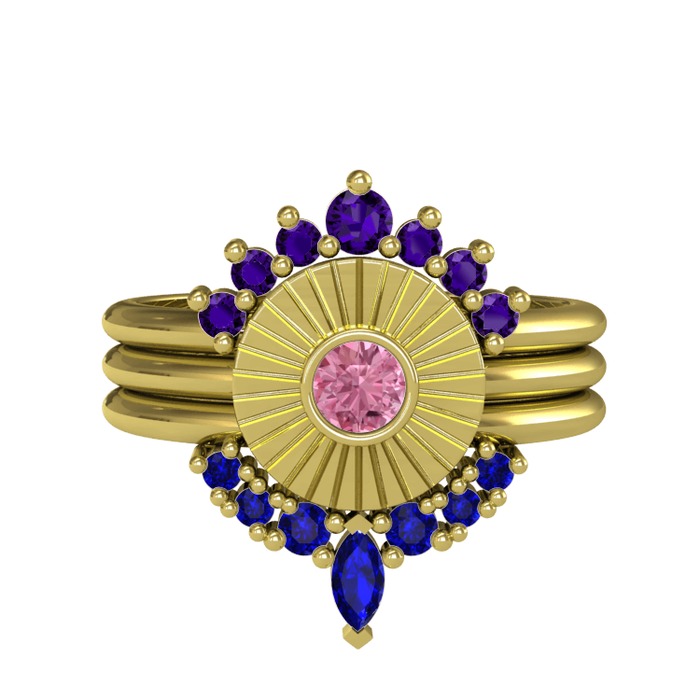 Ametist, pembe kuvars ve lab safir 8 ayar altın yüzük