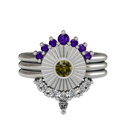 Ametist, peridot ve beyaz zirkon 925 ayar gümüş yüzük