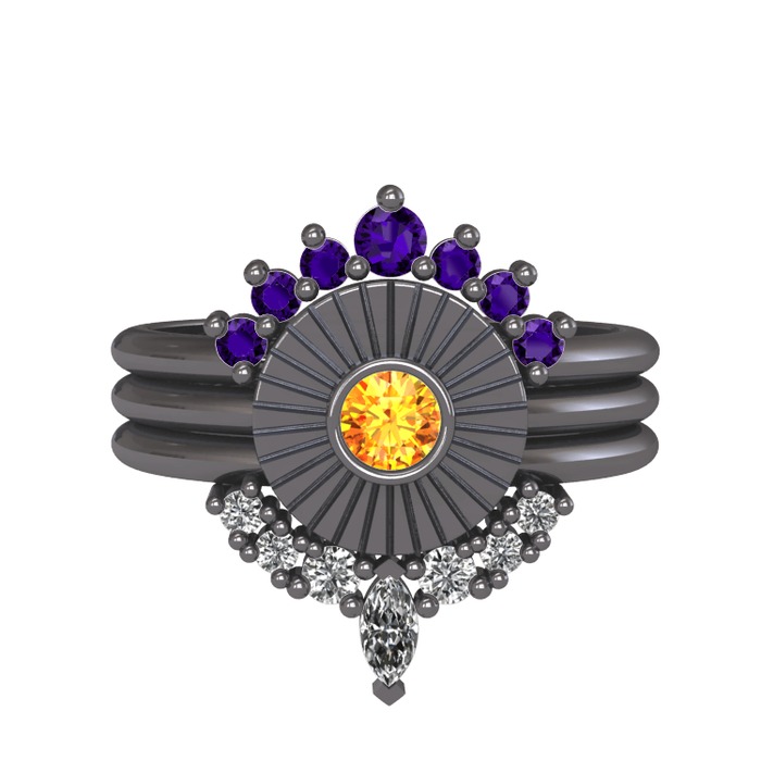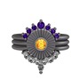 Ametist, sitrin ve beyaz zirkon 925 ayar siyah rodyum kaplama gümüş yüzük