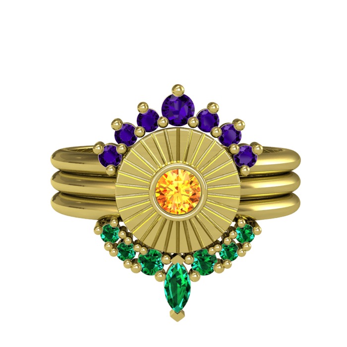 Ametist, sitrin ve yeşil kuvars 8 ayar altın yüzük