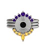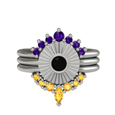 Ametist, siyah zirkon ve sitrin 8 ayar beyaz altın yüzük