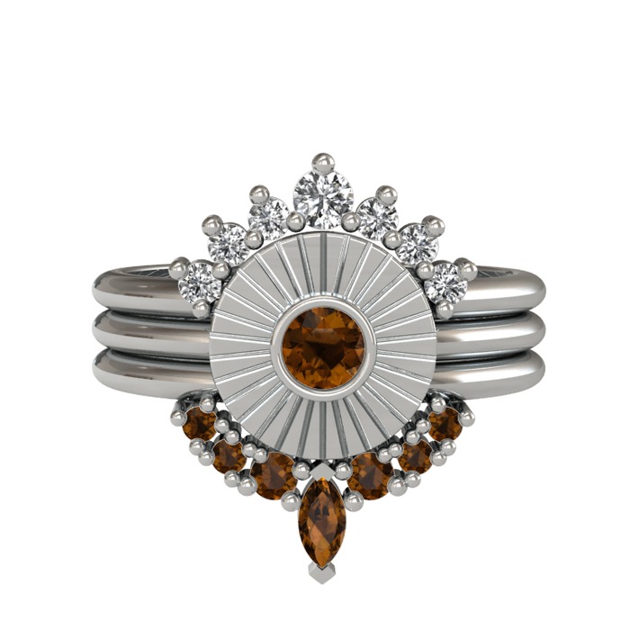 Beyaz zirkon ve dumanlı kuvars 18 ayar beyaz altın yüzük