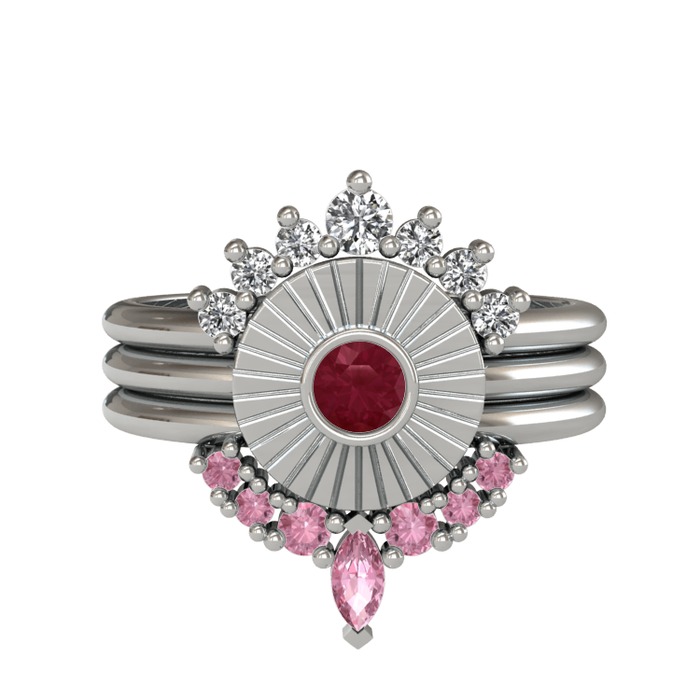 Beyaz zirkon, kök yakut ve pembe kuvars 925 ayar gümüş yüzük