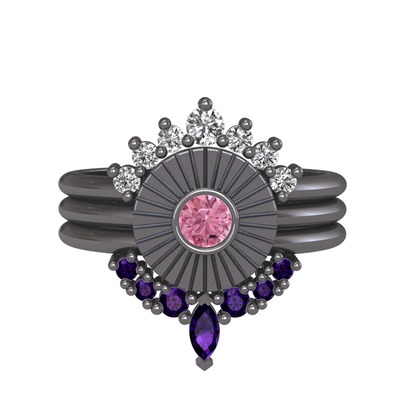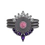 Beyaz zirkon, pembe kuvars ve ametist 925 ayar siyah rodyum kaplama gümüş yüzük