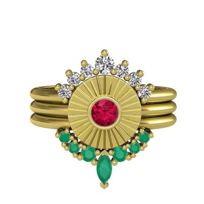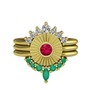 Beyaz zirkon, rodolit garnet ve kök zümrüt 925 ayar altın kaplama gümüş yüzük