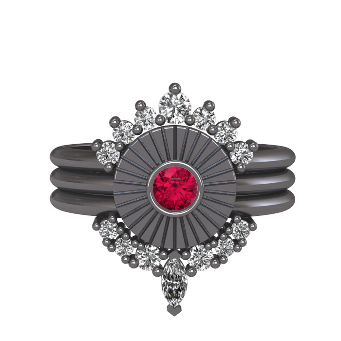 Beyaz zirkon ve rodolit garnet 925 ayar siyah rodyum kaplama gümüş yüzük