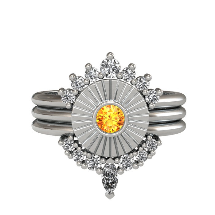 Beyaz zirkon ve sitrin 14 ayar beyaz altın yüzük