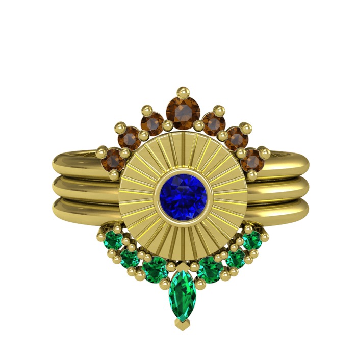 Dumanlı kuvars, lab safir ve yeşil kuvars 14 ayar altın yüzük
