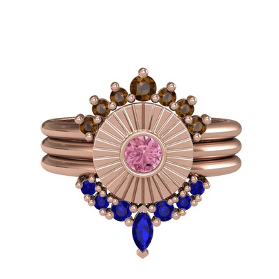 Dumanlı kuvars, pembe kuvars ve lab safir 8 ayar rose altın yüzük