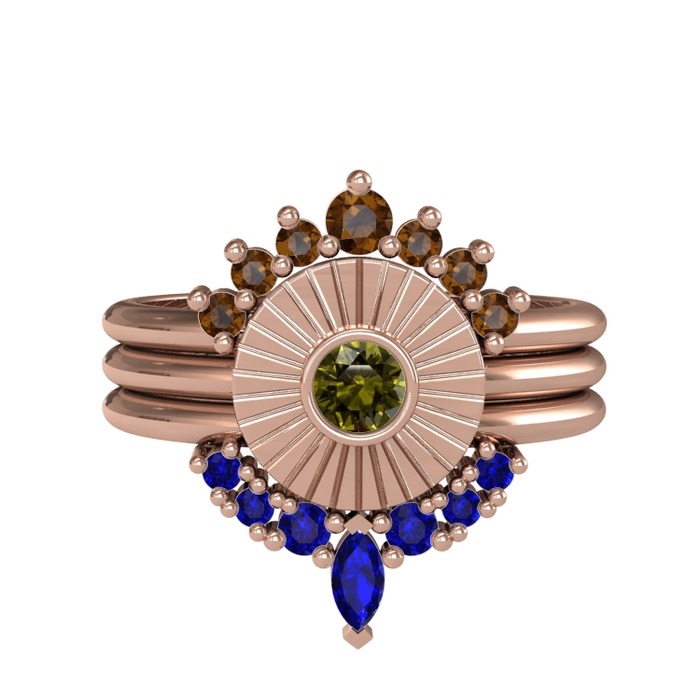 Dumanlı kuvars, peridot ve lab safir 8 ayar rose altın yüzük