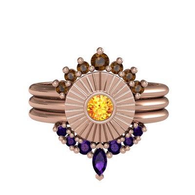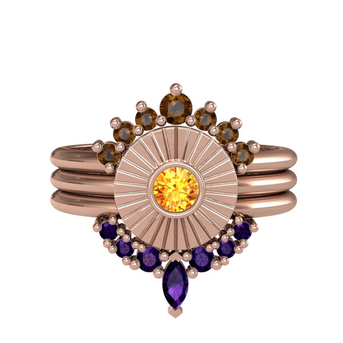 Dumanlı kuvars, sitrin ve ametist 18 ayar rose altın yüzük