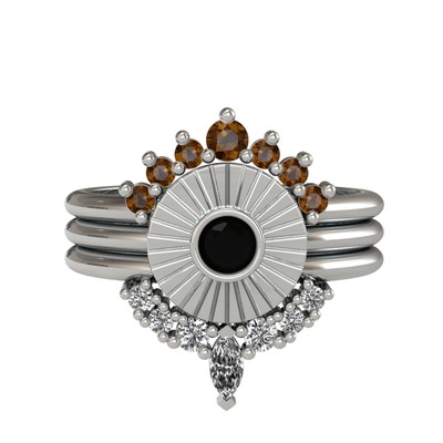 Dumanlı kuvars, siyah zirkon ve beyaz zirkon 14 ayar beyaz altın yüzük