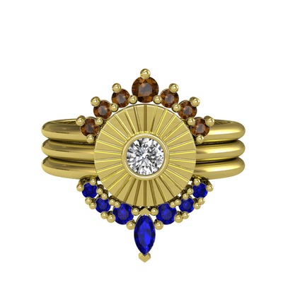Dumanlı kuvars, swarovski ve lab safir 18 ayar altın yüzük